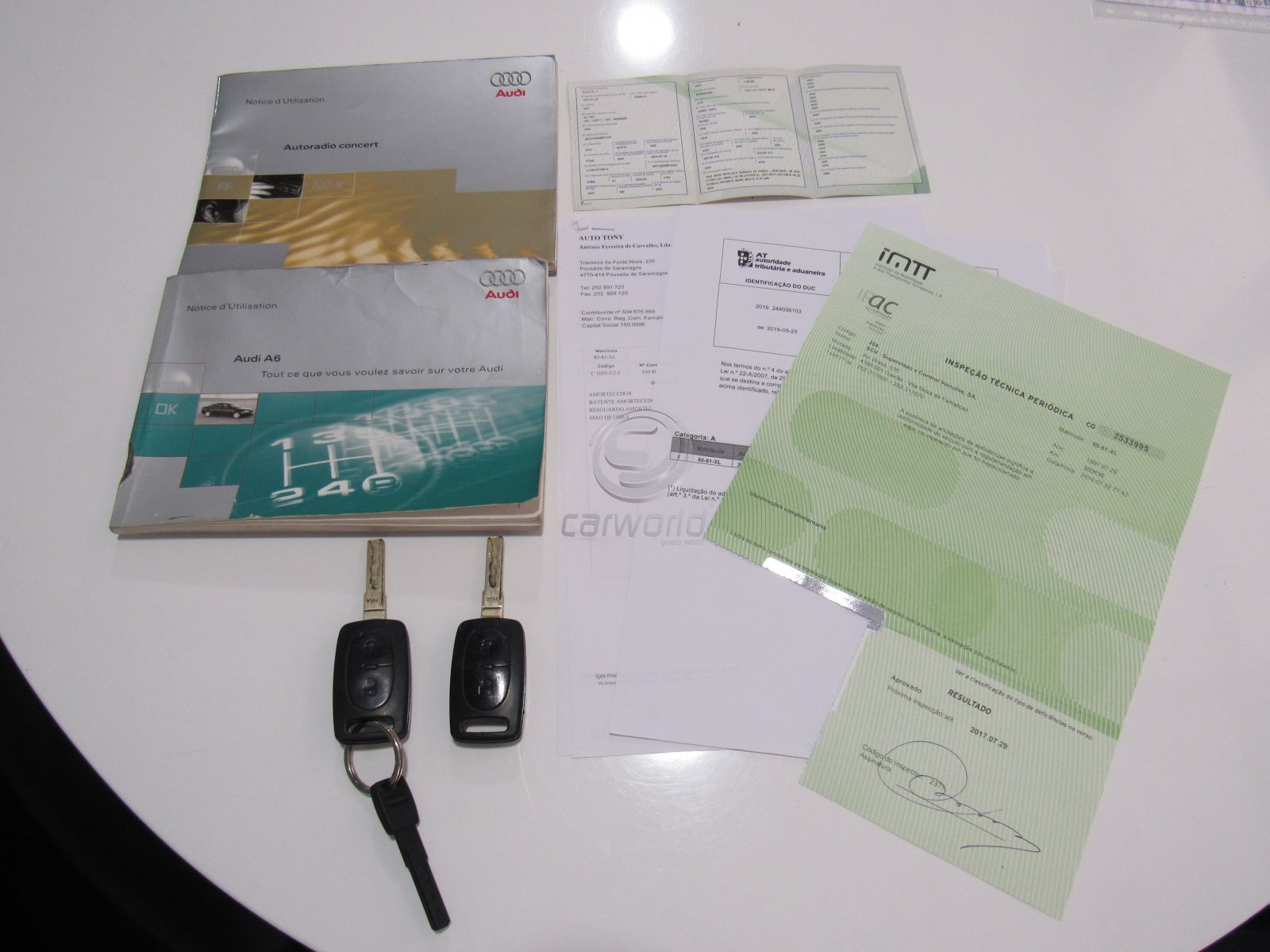 Comprovativo de livro de revisões de origem com duas chaves