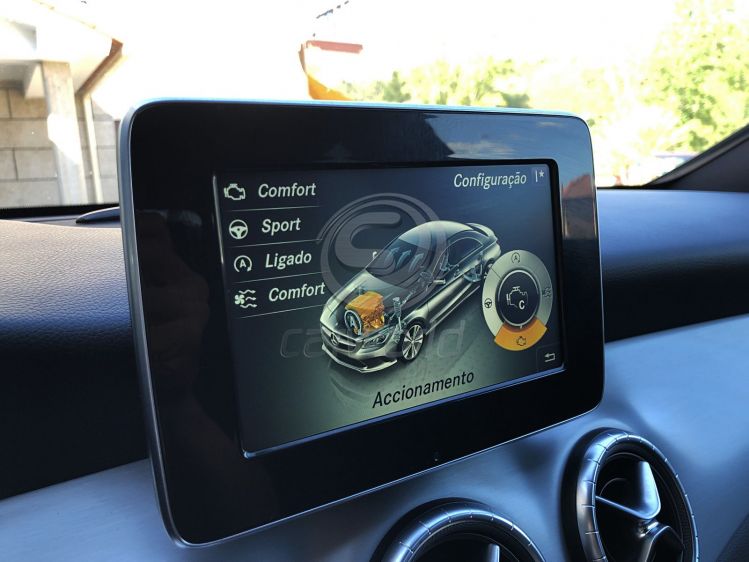 Extras em destaque: Botão Start/Stop; Sensores parque ; Bancos Desportivos em pele ; Drive Select; Ecrã central ; Entrada USB ; Volante Multifunções ; ISOFIX; Ar Condicionado ; Cruise control; Kit Mãos livres; Chave Inteligente, Jantes liga leve AMG; Grelha diamante.